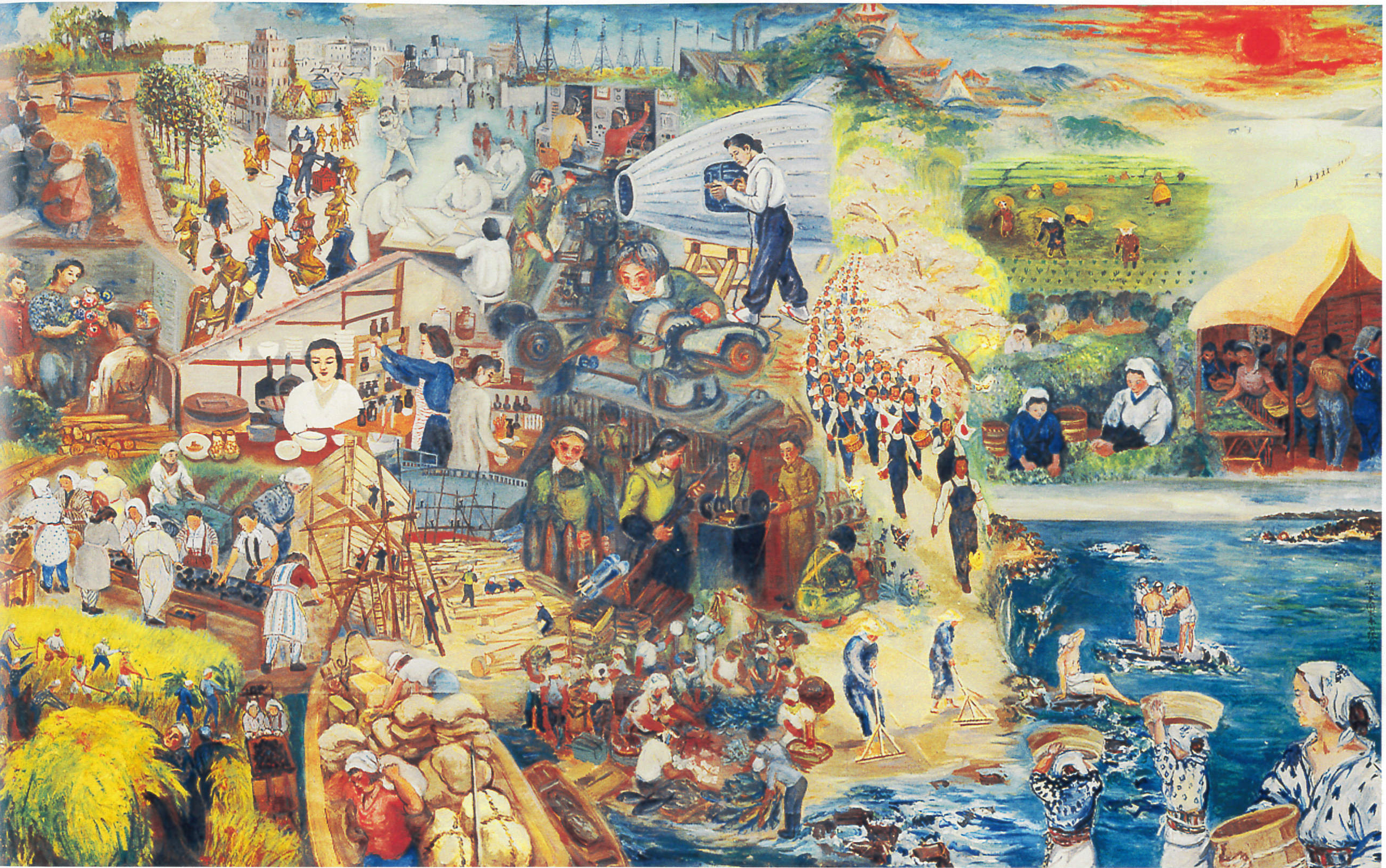 図2 女流美術家奉公隊《大東亜戦皇国婦女皆働之図 春夏の部》1944年