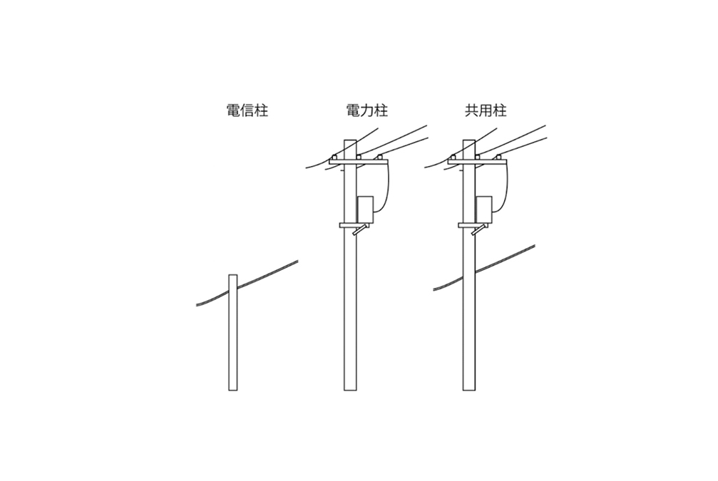 しばしば混同されるが、電信柱は本来、電信線(通信線)が架かっている柱のことである。電力の橋渡しをしている高圧線・低圧線が架かっている柱は電力柱(電柱)と呼ばれる。順序としては、まず電信(電信柱)の普及があり、それからずっと後になって電気(電柱)が普及している。電気よりも電信が先なのである。見分け方のコツであるが、高電圧で危険な電線のほうが高いところに設置されている。低い方の線が通信線(現在では電話・光ファイバー・CATV)である。なお現代では通信線と電線双方を兼ね揃えた「共用柱」が一般的となっている。さらにいえば共用柱自体、埋め立てなどによる「無電柱化」が各地で進行中である[11]。