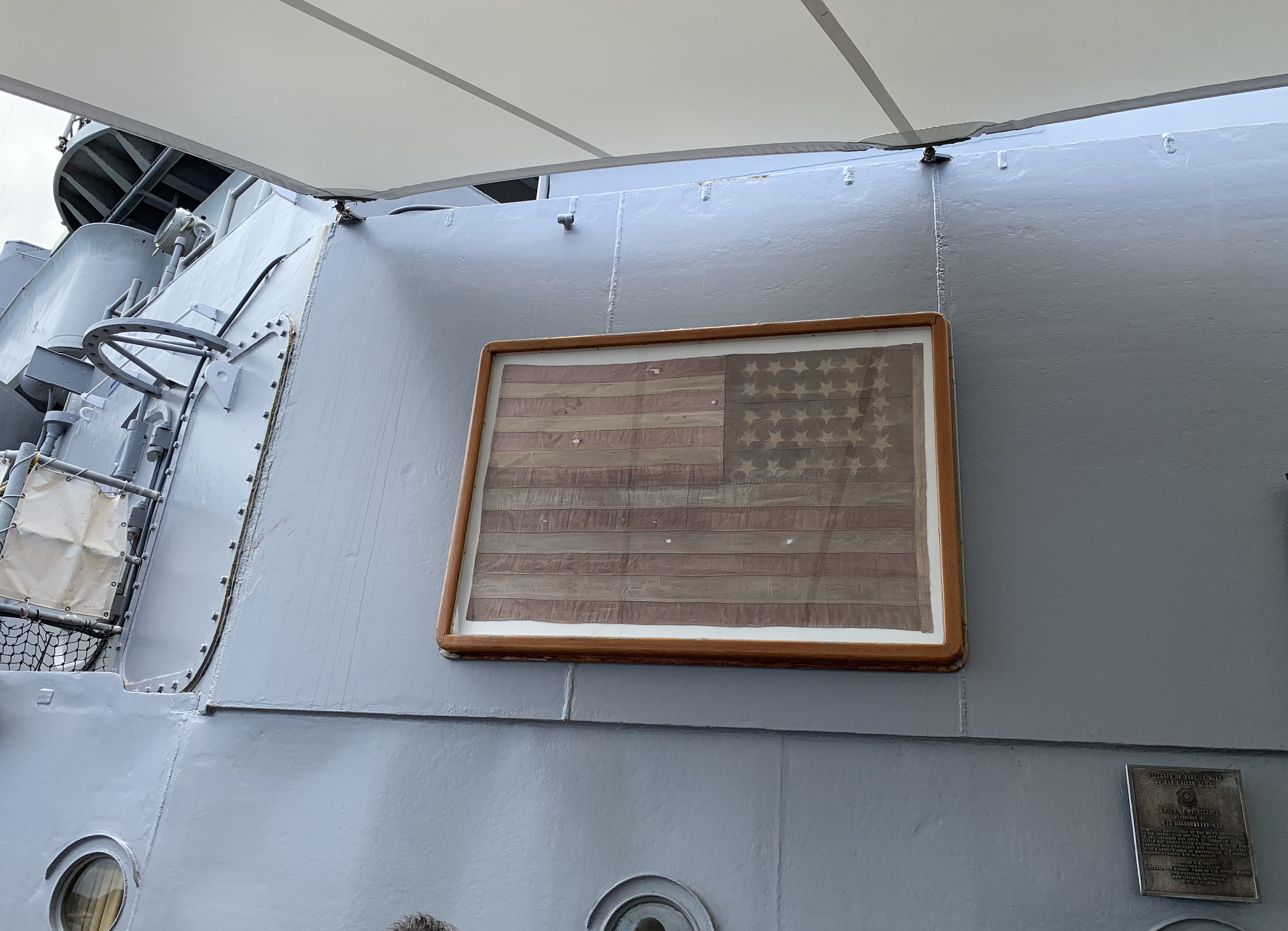 戦艦ミズーリ記念館にある、ペリーの星条旗のレプリカ 撮影:筆者