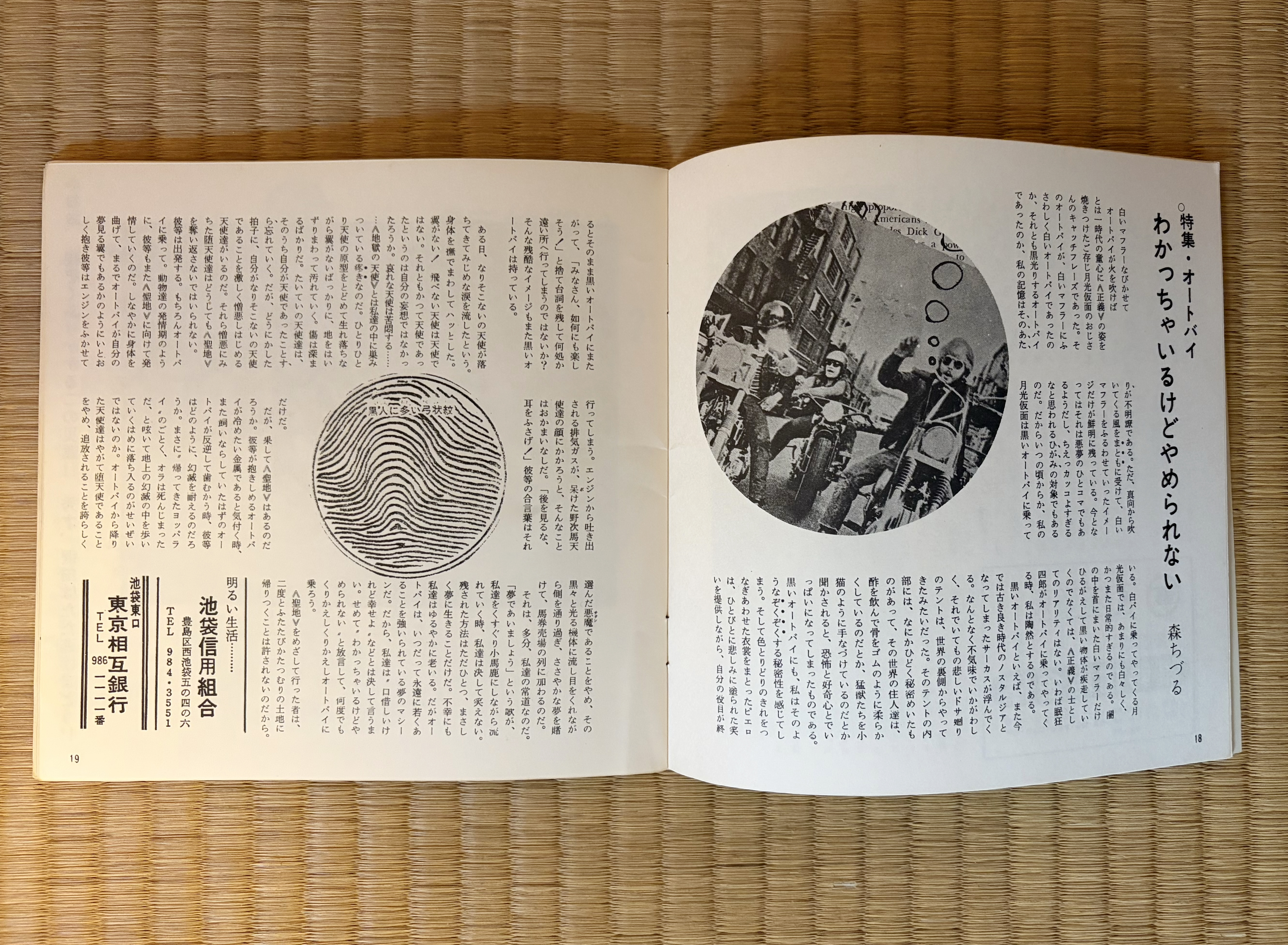 『いけぶくろ』でのコラージュの例。1971年3月号「特集・オートバイ」。撮影:筆者