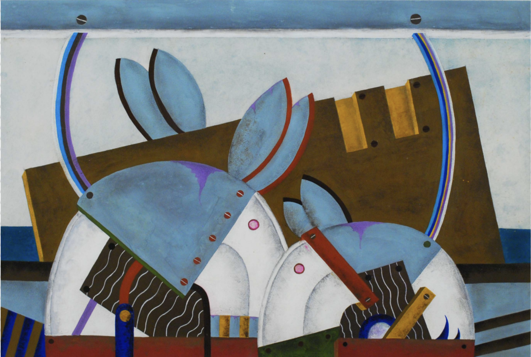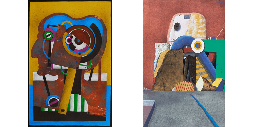 《制御装置》のシリーズは1976年の春秋画廊での個展において発表されている。構図からモチーフ(機械化された人体表現、幾何学模様)までかなりの影響をみてとることができる。そのうえで気づかされるのは、宮迫の機械の──潮風によるであろう──「錆び」のようなテクスチャである。