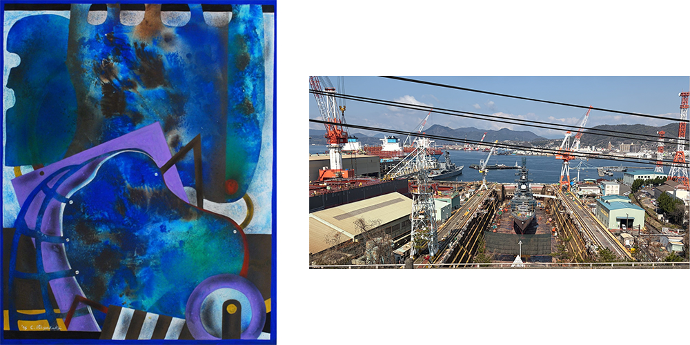 (右)ジャパン マリンユナイテッド株式会社・呉事業所(旧呉海軍工廠造船部造船船渠)。撮影:筆者
